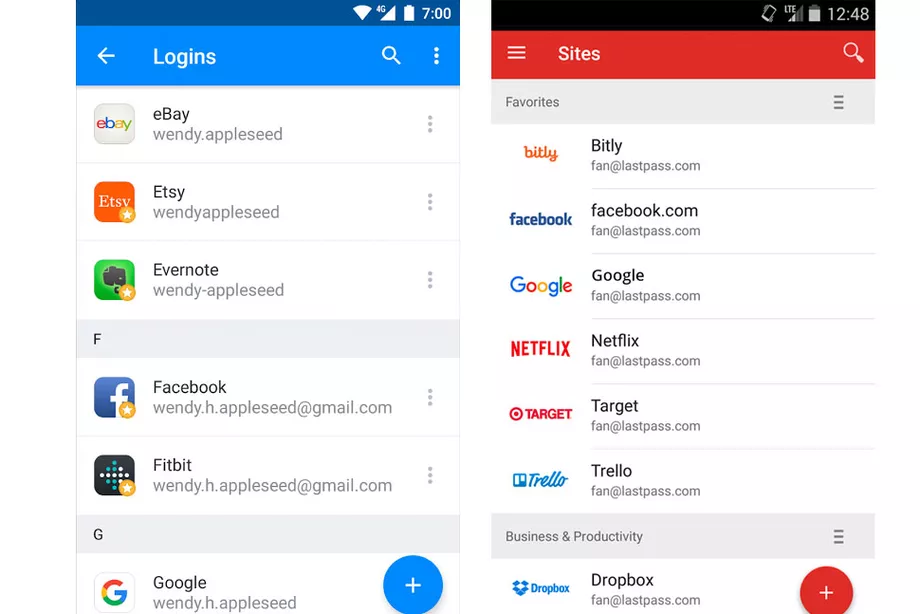تطبيق مميز لحفظ كلمات المرور الخاصة بك بطريقة آمنة وفريدة، حيث يتطلب الأمر بصمة اصبعك فقط لتسجيل الدخول إلى التطبيق والحصول على كلمات المرور، ونقدم لكم تطبيقين أحدهم برسوم شهرية منخفضة وهو 1PASSWORD ولكن بمزايا عديدة، أما إذا كنت تبحث عن تطبيق مجاني فإن LASTPASS هو أنسب خيار لك ، يعتبر هذان التطبيقان من أهم و أفضل 10 تطبيقات للأندرويد