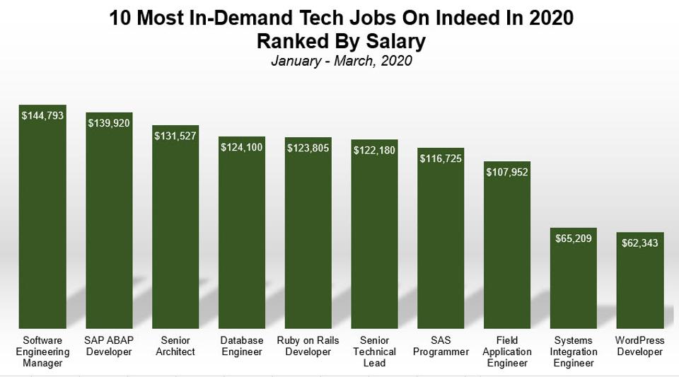 حيث قارن الباحثون طلبات الوظائف التقنية في هذه الفترة مع الوظائف الأخرى، وخرجوا بقائمة من عشرة وظائف هي الأكثر طلبًا في القطاع التقني بُمعدّل ارتفاع بلغ 30 في المائة، وتشمل الوظائف عمليات تطوير وورد بريس، وهندسة تكامل الأنظمة، وبرمجة SAS.