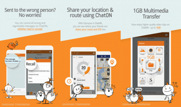 والجدير بالذكر ان تطبيق ChatOn يمتلك الان 180 مليون مستخدم مُسجل، كما انه يأتي محملاً بشكل مسبق على مجموعة من اجهزة سامسونج، فضلاً عن وجود تطبيق مستقل لمنصات iOS، والاندرويد، والويندوز فون وغيرها.