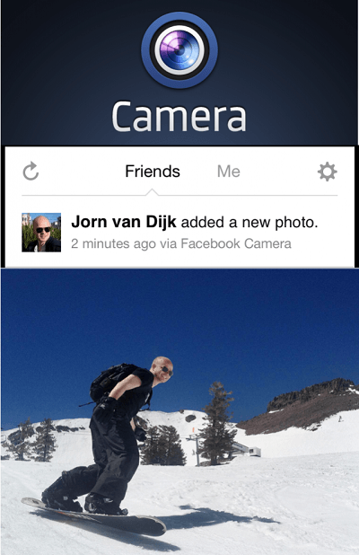 قامت فيسبوك باطلاق تطبيق جديد لأجهزة iOS يسمح للمستخدمين بالتقاط الصور ومشاركتها عبر فيسبوك بسهولة. ويُعتبر التطبيق المسمى Facebook Camera ثاني تطبيق تطلقه فيسبوك بشكل منفصل عن تطبيقها الأساسي بعد تطبيق الدردشة Messenger.