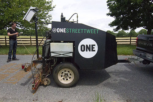 بادرة طيبة قام بها فريق واحد One الذي صنع طابعة ضخمة تحول تغريداتك من الموقع لتنسخها على شارع واشنطن بالولايات المتحدة الأمريكية.