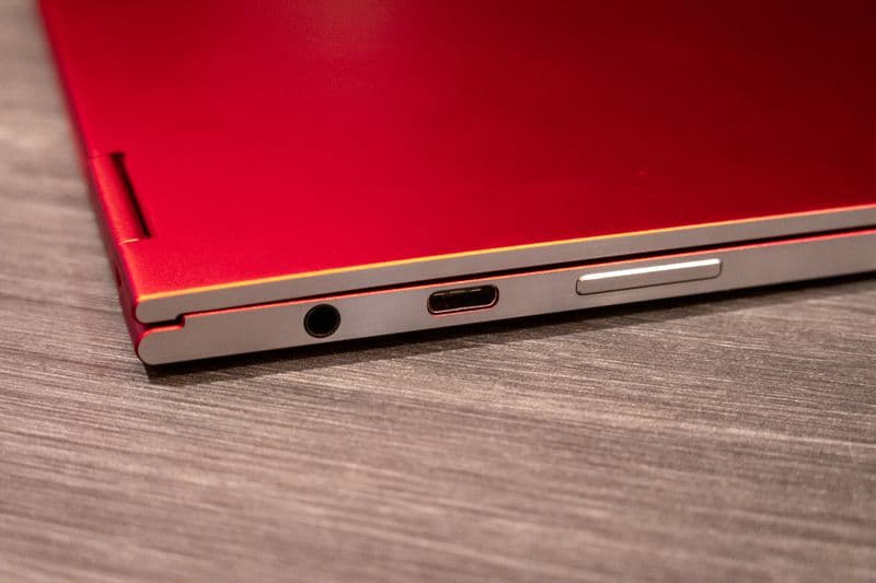 يبدأ العتاد التقني القوي في الظهور مع الشاشة مقاس 13.3-بوصة بدقة 4K من نوع أمولد، ثم مع الدخول للمزيد من التفاصيل ستجد المعالج من الجيل العاشر من إنتل Core i5، وهناك مستشعر للبصمة يُمكن استخدامها في فتح قفل الجهاز، ومنفذين من نوع USB-C، وإمكانية التخزين الخارجي بواسطة بطاقات microSD.