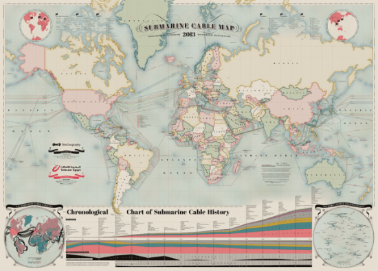 قامت منظمة TeleGeography باطلاق خريطتها المحدثة لكابلات الإنترنت البحرية وتظهر فيها 232 كيبل يغذي العالم بالإتصالات ويربطه مع بعض.