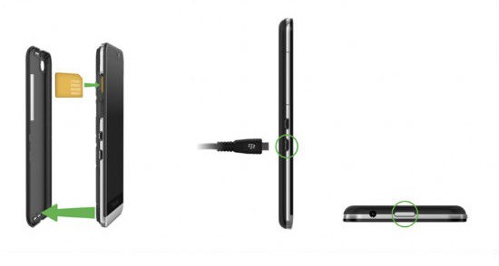 قام أحد المواقع بتسريب صور من كتيب التعليمات لهاتف BlackBerry A10، الصور تبين أن منفذ شريحة الإتصال SIM و كذلك منفذ بطاقة الذاكرة سيكون من جانب الهاتف على اليمين مع وجود غطاء صغير لتغطيتها . نلاحظ أيضاً تحت هذين المنفذين يوجد منفذ لوصلة microUSB و آخر لوصلة miniHDMI . الهاتف يملك غلاف خلفي قابل للإستبدال لكن بطارية غير قابلة للإستبدال.