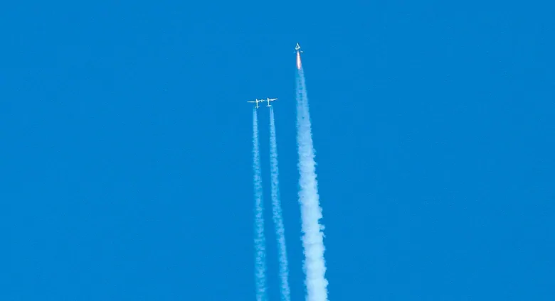 فيرجن جالاكتيك تتخطى حدود الفضاء للمرة الأولى بسفينتها الفضائية