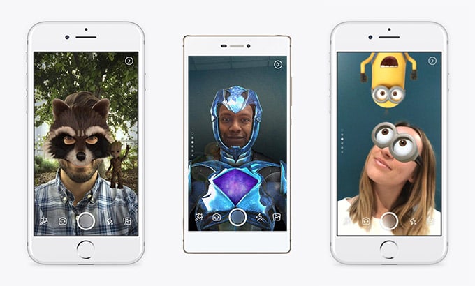 كما أصبح التطبيق يتمتع أيضاً بزر للكاميرا في الجانب الأيسر من الشاشة الرئيسية يؤدي النقر عليها إلى الوصول إلى إعدادات كاملة خاصة بالكاميرا والتأثيرات والإطارات والألوان وغيرها من الأدوات، وما يثير الاهتمام في هذه الإضافات التي تضيفها فيس بوك هو أنها لا تفرق بين منتجاتها وتوفر المزايا نفسها على جميع المنصات والتطبيقات وهذا يعد أمراً سيئاً بالنسبة لشركة تشتهر بإبداعاتها.