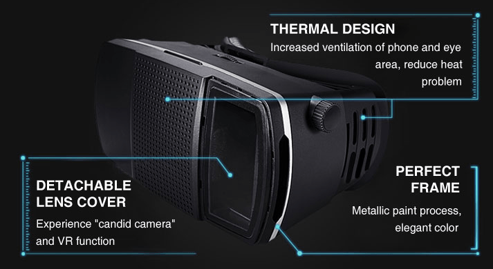 كما يتميّز بقاعدة إسفنجية مريحة للوجه والعينين، عدا عن كون بيئة العمل مصمّمة للتعامل مع جهاز تحكم عن بعد وعبر تقنية البلوتوث، بالإضافة إلى كونه مزوّد بعصا لعب لتضمن للمستخدم أفضل تجربة على الإطلاق، ومتوافق مع الهواتف الذكية التي يتراوح حجم شاشاتها بين 4.7 و 6 إنشات.