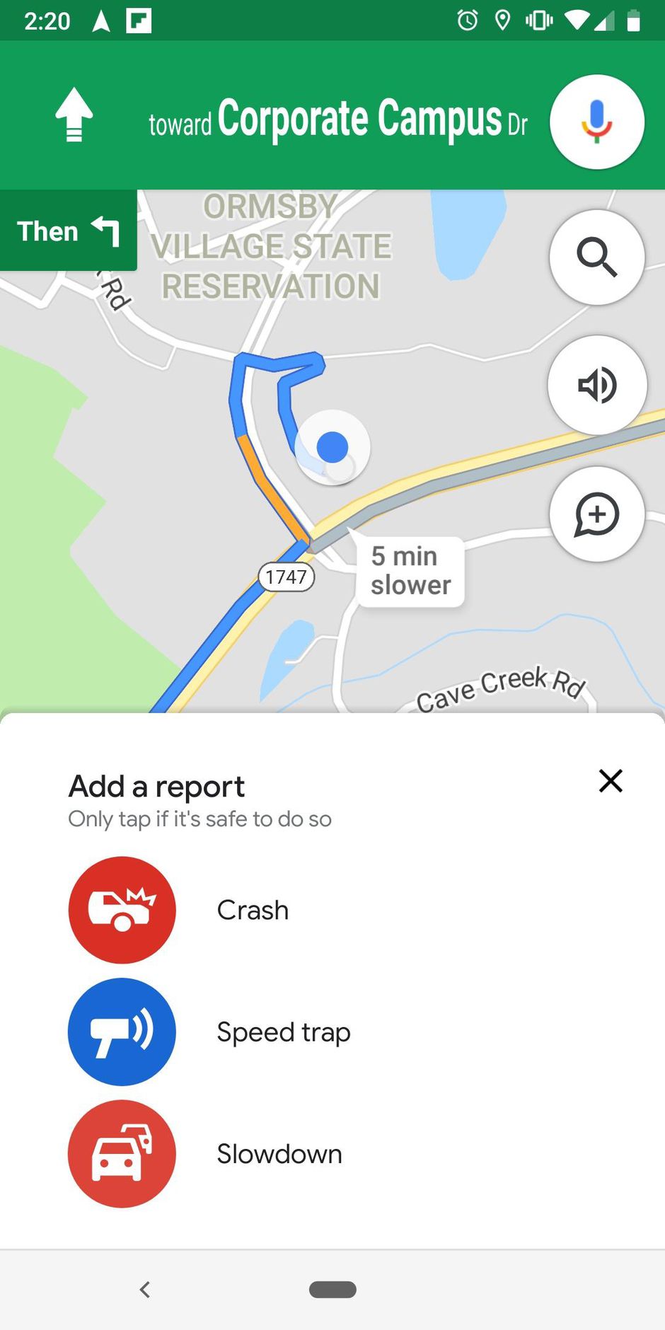 3. عندما تكون على الطريق وترى حطامًا أو بطء في السير انقر فوق علامة فقاعة الكلام مع علامة زائد “+”.