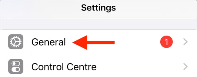 أولًا، افتح تطبيق الإعدادات Settings على آيفونك ثم اذهب إلى القسم العام General.