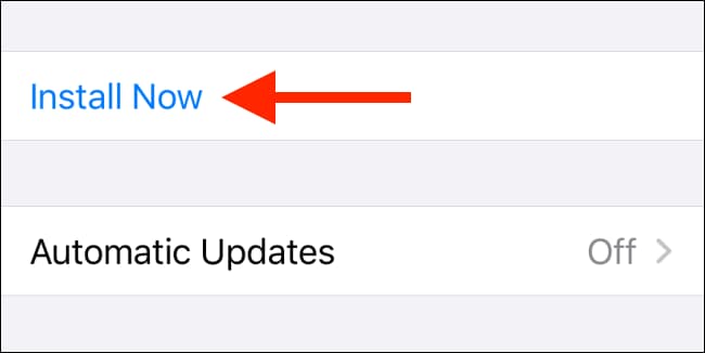 هنا، إذا كنت لا تملك أحدث إصدار من نظام iOS اضغط على تحميل وتثبيت Download and Install، أمّا إذا تمّ تحميل التحديث بالفعل سوف يظهر لك زر تحميل الآن Download Now.