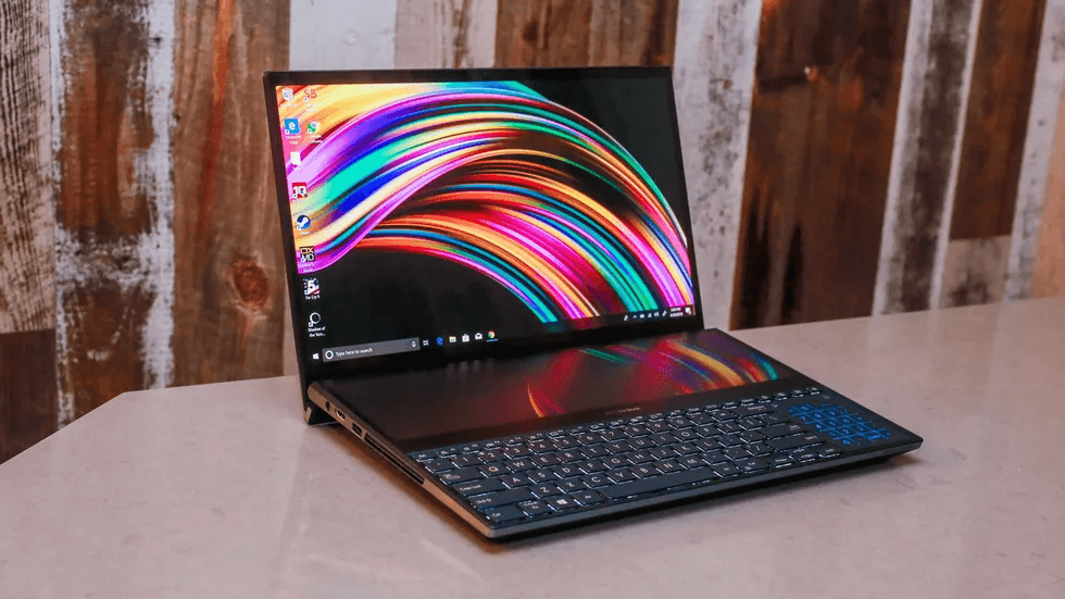 كشفت أسوس في مايو الماضي عن لابتوب Asus ZenBook Pro Duo بفكرة فريدة من نوعها، حيث يأتي الجهاز مع شاشتين، الشاشة الرئيسية بمقاس 15.6 بوصة من نوع OLED وتبلغ دقتها 4K، وشاشة أخرى فرعية أعلى لوحة المفاتيح مقاس 14 بوصة بنفس الدقة.