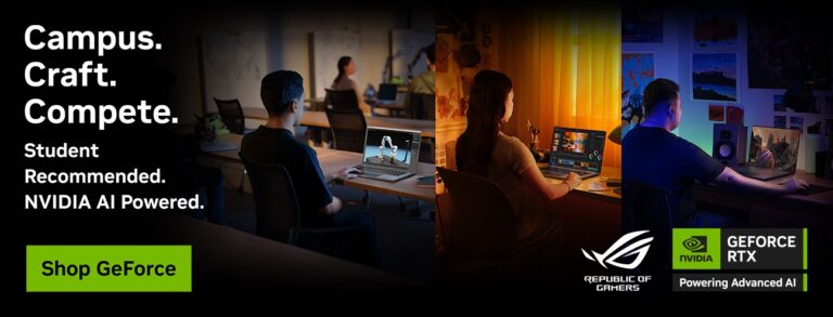 تأتي أجهزة ROG مدعومة بأحدث تقنيات NVIDIA Studio التي تجعل كل فكرة تتحول إلى واقع بسرعة وسلاسة مذهلتين. حيث تعمل جميع برامج التصميم والتصوير ثلاثي الأبعاد عليها بكفاءة أعلى بفضل الذكاء الاصطناعي. كما يمكنك إنشاء شخصيات واقعية ومشاهد احترافية باستخدام أدوات RTX AI.