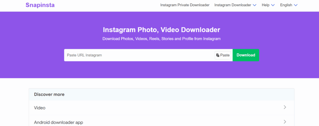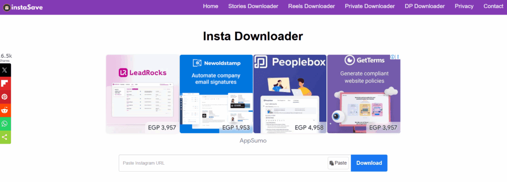 يتيح لك Insta Downloader التنزيل من إنستغرام دون الحاجة إلى تنزيل أي برنامج أو تطبيق. يمكنك التنزيل بسهولة عبر متصفحك من أي جهاز بصيغة MP4. ومن خلال واجهته البسيطة، يمكن لأي شخص التعامل مع الأداة دون أي مشكلة. والأفضل من ذلك، أنه مجاني تمامًا ولا يتطلب تسجيل دخول. يمكنك ببساطة نسخ الرابط ولصقه، وستحصل على المحتوى على جهازك لمشاهدته لاحقًا دون اتصال بالإنترنت. عملية التنزيل سريعة، وجودة المحتوى الذي يتم تحميله ممتازة. كما يمنحك القدرة على التنزيل من الحسابات الخاصة. باختصار، إنه أداة رائعة ننصح بها لكل من يرغب في تحميل فيديوهات وصور وريلز إنستجرام. هناك عيب واحد في الموقع حيث يحتوي على الكثير من الاعلانات المزعجة التي تظهر في كل مكان.