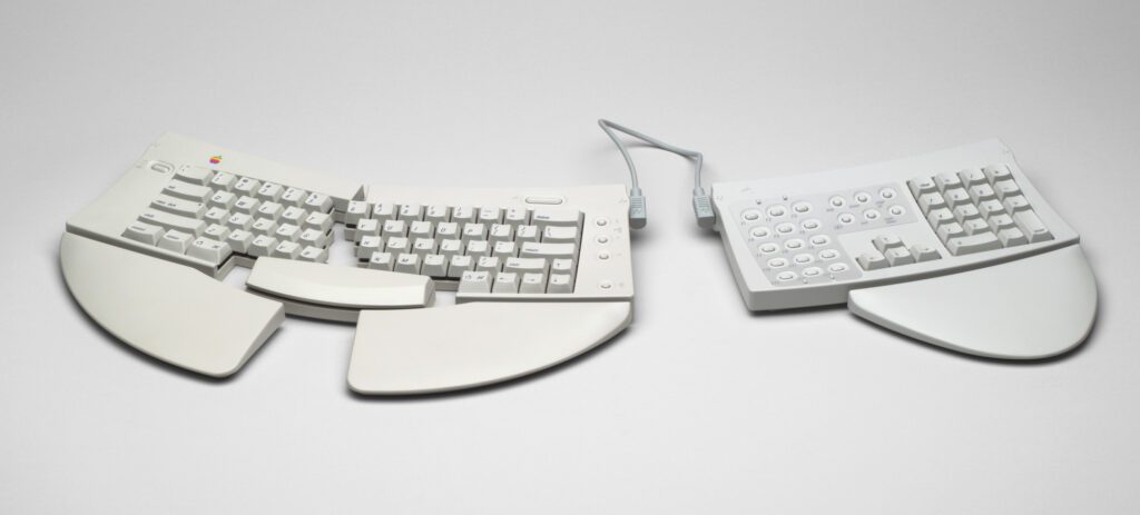 يعد من أغرب أجهزة آبل المجهولة على الإطلاق. تم إطلاقه في 1993 وجاء بتصميم جرئ ليقدم حل مريح ومبتكر. كان الكيبورد مقسم لنصفين يمكن فصلهما وتعديل زاويتهما بما يصل إلى 30 درجة للتناسب مع الوضع الطبيعي للمعصم والذراع أثناء الكتابة. على الرغم من أن الكيبورد كان رائدا بسبب التصميم الجديد والمميز. إلا أن الكثيرين شعروا بأن التصميم يعيق من سرعة الكتابة لديهم. أيضا سعر الكيبورد كان مرتفعا مقارنة بالمنافسين.