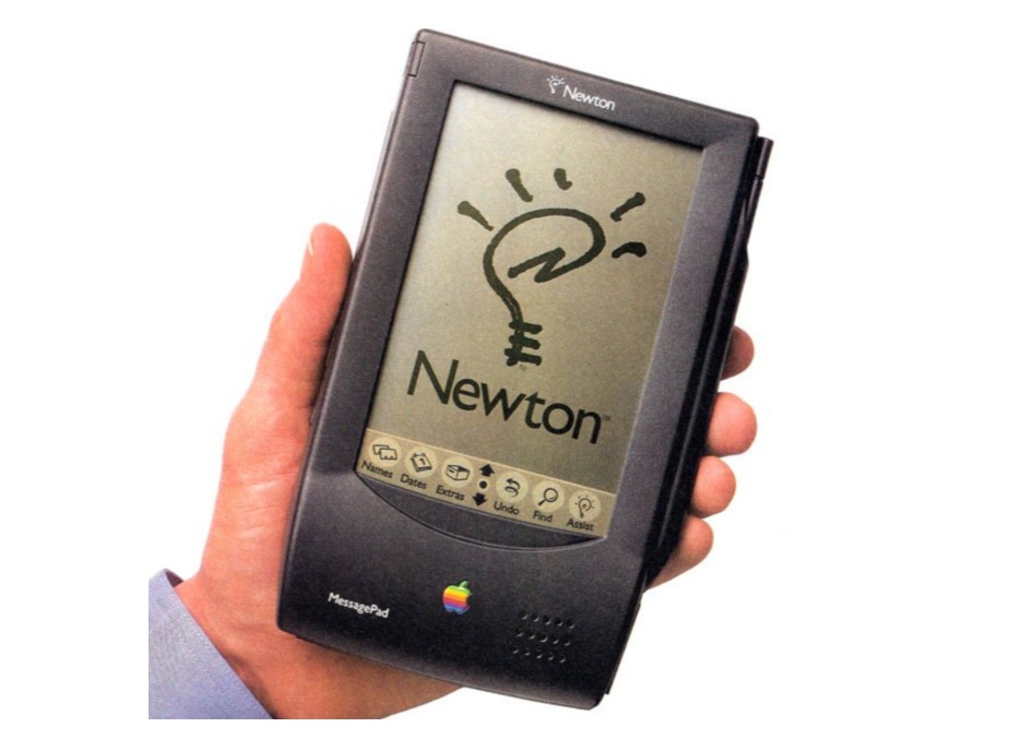عبارة عن مساعد رقمي يضم شاشة لمسية أحادية اللون. حاولت آبل من خلاله استهداف رجال الأعمال. يمكن لنيوتن التعرف على خط اليد. لكن أدى عمر البطارية القصير ومشاكل تقنية التعرف على الكتابة بالإضافة إلى السعر الغالي. لفشل جهاز آبل نيوتن ثم مع عودة ستيف جوبز لإدارة الشركة، قرر إيقاف الجهاز بشكل نهائي.
