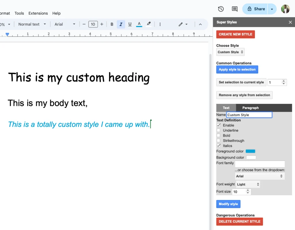 إذا كنت تتعامل مع مستندات طويلة أو تقارير رسمية، فإن Super Styles تمنحك قوة تنسيق متقدمة بضغطة زر. يمكنك إنشاء أنماط مخصصة للعناوين والفقرات وتطبيقها بسرعة، ما يضمن مظهرًا موحدًا واحترافيًا للمستند بأكمله.