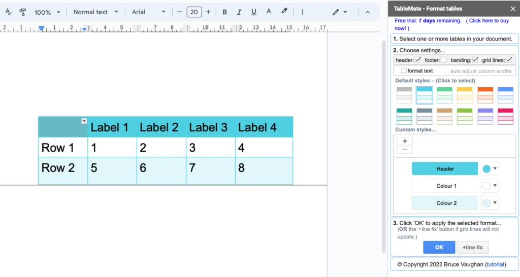 إنشاء الجداول في Google Docs قد يكون محدودًا أحيانًا، وهنا يأتي دور TableMate. تساعدك هذه الإضافة على إدراج الجداول بسرعة، مع التحكم في الأعمدة والصفوف وتنسيق البيانات بطريقة أكثر مرونة.