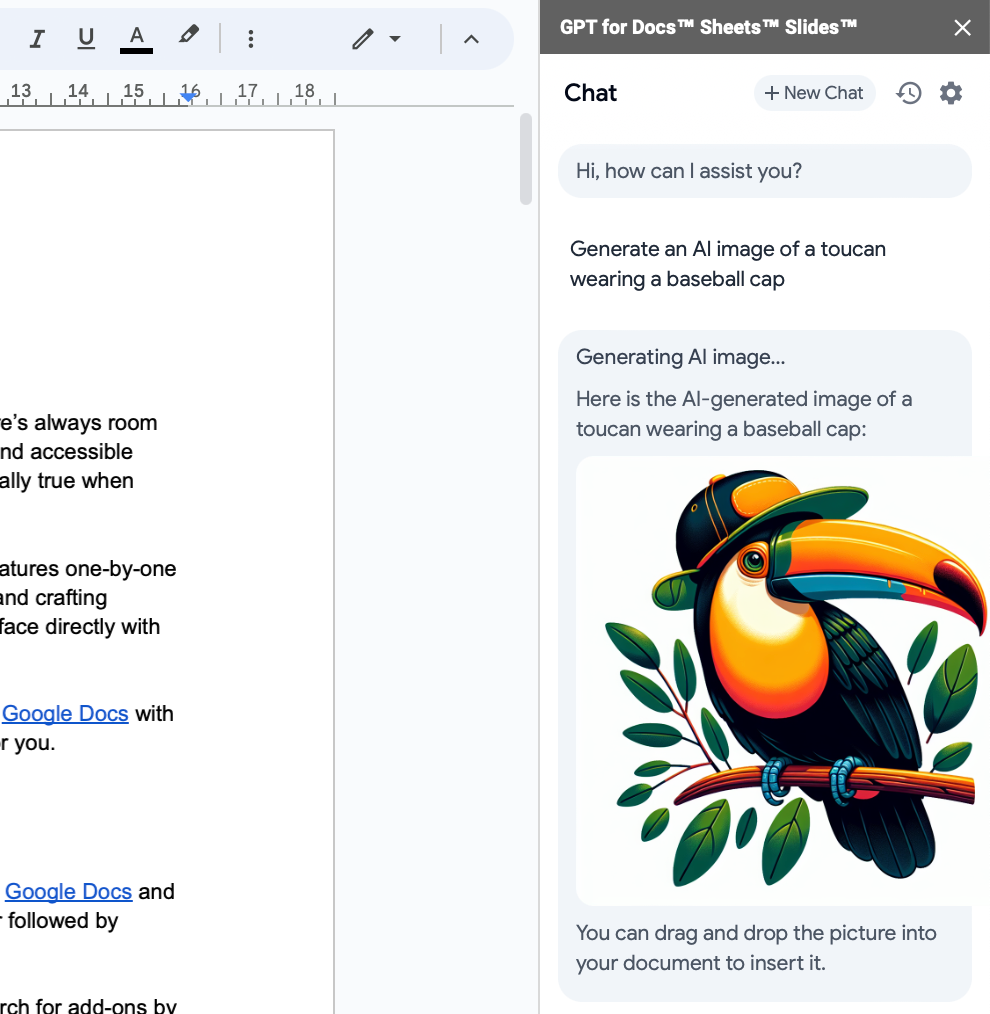 رغم أن الإضافة موجهة للعروض التقديمية، إلا أنها مفيدة داخل بيئة Google Docs عند إعداد محتوى منظم. تساعدك على توليد أفكار وصياغة نصوص وتلخيص محتوى سريع، الأمر الذي يجعلها أداة قوية للإنتاج السريع.