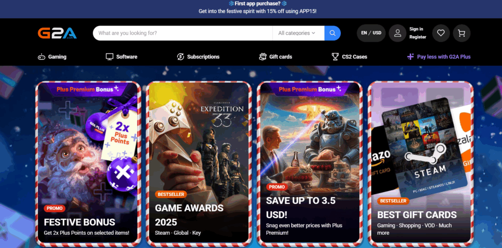 يمكن القول بأن G2A عبارة عن موقع معروف يقدم للمستخدمين خصومات كبيرة على أحدث إصدارات ألعاب الفيديو. إذا كنت تبحث عن طريقة لتوفير المال على الألعاب الشهيرة وعالية الجودة، فهذا هو المكان المناسب. على الرغم من عدم وجود ألعاب مجانية للتحميل مباشرة من هذا الموقع، يمكنك المشاركة في نظام G2A Loot، حيث يمكنك استبدال العملات للوصول إلى “صناديق” قد تحتوي على مجموعة متنوعة من الألعاب المجانية، بما في ذلك أحدث ألعاب AAA.