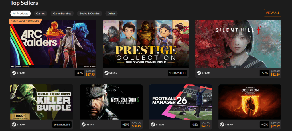 - خصومات وتخفيضات منتظمة على أحدث إصدارات الألعاب وأكثرها رواجًا