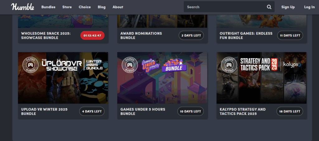 Humble Bundle يمثل نموذجًا مختلفًا تمامًا عن المتاجر التقليدية. الفكرة هنا ليست بيع لعبة واحدة بسعر ثابت. بل تقديم مجموعة كاملة من الألعاب مقابل مبلغ صغير نسبيًا، مع إضافة بعد إنساني للتجربة. حيث يتم اقتطاع جزء من المبلغ الذي تدفعه لدعم مؤسسات خيرية، ما يجعل الشراء عبر هذا الموقع، تجربة مرضية أخلاقيًا وماديًا في آن واحد. علاوة على ذلك، هناك الاشتراك الشهري، حيث تحصل على مجموعة ألعاب جديدة تضيفها لمكتبتك بشكل دائم وليس لفترة محدودة.
