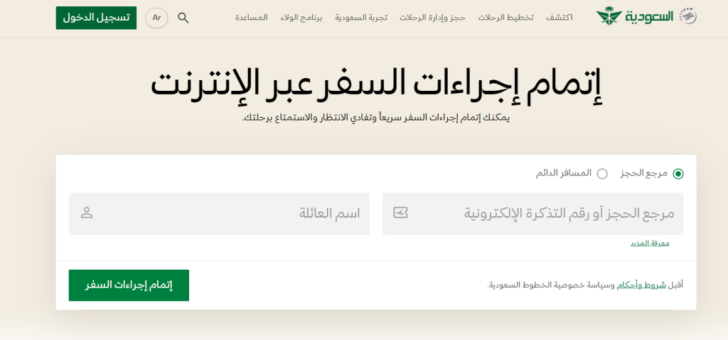 - ثم إدخال رقم الحجز على تذكرة الطيران.