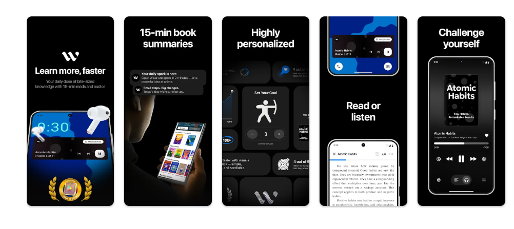 يخاطب Wiser المستخدم الذي يرغب في تطوير معرفته دون الالتزام بساعات طويلة من القراءة. من خلال ملخصات صوتية ونصية لا تتجاوز 15 دقيقة، يمنحك التطبيق خلاصة الأفكار الأساسية للكتب بواسطة مجموعة متنوعة وبسيطة من الأدوات التي سوف تتيح لك الحصول على تجربة عملية تجعل القراءة جزءًا سهلًا من الروتين اليومي.