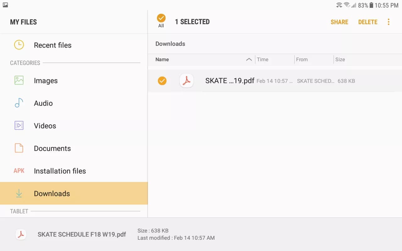 - افتح الملف الذي ترغب بمشاركته ثم اضغط عليه مطولاً ثم اضغط على مشاركة Share في الركن العلوي الأيمن.