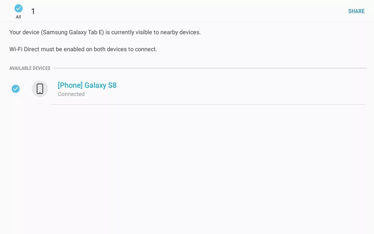 - اضغط على الهاتف أو اللوحي الذي ترغب بإرسال الملفات إليه ثم اضغط على مشاركة Share في الركن العلوي الأيمن.
