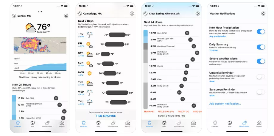 التطبيق الثاني الأهم لك بعد خرائط جوجل، هو معرفة الطقس بشكل دقيق، وهذا ما يوفره لك تطبيق DARK SKY، حيث يقدم لك تنبؤات سريعة عن حالة الطقس في الدقائق القليلة القادمة، وحينها ستعلم أي الوقت المناسب للخروج بسيارتك من بيتك لقضاء رحلاتك وهو أساسي لديك ضمن قائمة افضل تطبيقات الايفون الجديد.