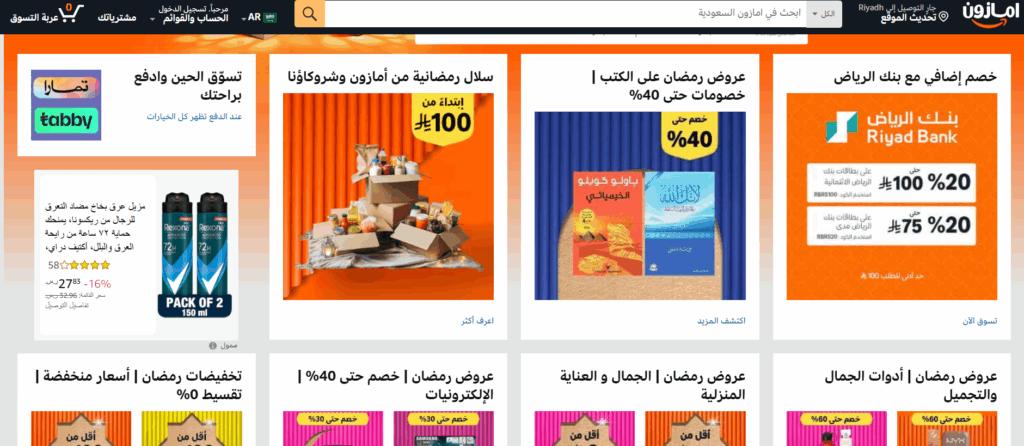 باعتبارها إحدى منصات التجارة الإلكترونية الرائدة في العالم، تحظى أمازون بثقة واسعة من المتسوقين في السعودية. وبفضل تشكيلتها الضخمة من المنتجات التي تغطي كل ما يخطر على البال تقريبًا وهذا يشمل الإلكترونيات والكتب والبقالة والملابس وغيرها. تعد أمازون الخيار الأمثل لملايين الأشخاص. كما أن عروضها المتكررة والتخفيضات والسياسات العادلة، تجعلها أولى الخيارات للمواطنين وكذلك المقيمين في المملكة.