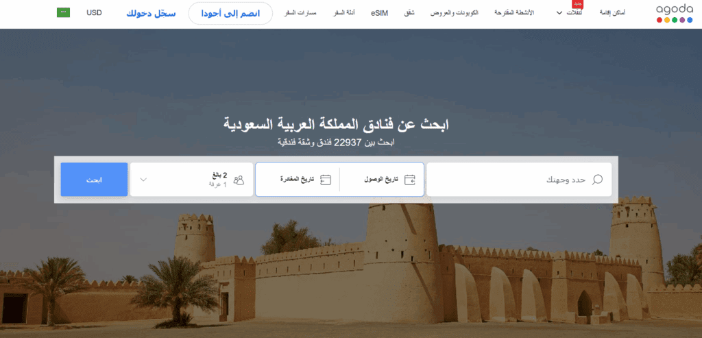 من التطبيقات الرائدة في منطقة آسيا وشهد انتشارًا قويًا في المملكة العربية السعودية. ويعتبر Agoda خيارًا مفضلًا لدى الباحثين عن أسعار تنافسية وخيارات إقامة متنوعة داخل السعودية وخارجها. يتميز بواجهة استخدام مرنة تسهل عملية البحث والمقارنة بين مئات الفنادق والمنتجعات، مع عرض واضح للتقييمات والصور الحقيقية لكل مكان إقامة. كما يوفر تطبيق أجودا عروضًا خاصة لمستخدمي الجوال، وخيارات دفع متعددة تناسب مختلف الاحتياجات، سواء بالدفع المسبق أو عند الوصول، مما يمنح المسافر مرونة أكبر عند التخطيط لرحلته.