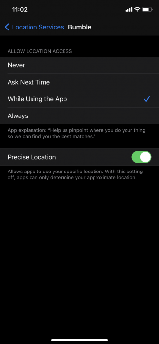 بعد معرفة مقدار الأذونات التي تتمتع بها التطبيقات لبيانات موقعك، قد ترغب في تغييرها أو منحها بيانات الموقع التقريبية. وفي هذه الحالة اضغط على أي تطبيق عندما تكون في شاشة بيانات الموقع، وستتمكن من رؤية مستوى الأذونات وخيار الموقع الدقيق ويمكنك تغييره إن أردت.