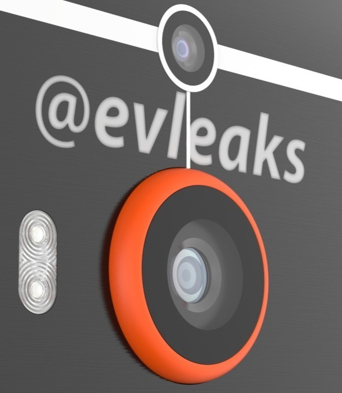 هذا وقد كان @evleaks نشر صورة مُقربة للهاتف، وكذلك صورة الاعلان عن الهاتف والتي توضح الجهاز من الامام والخلف.