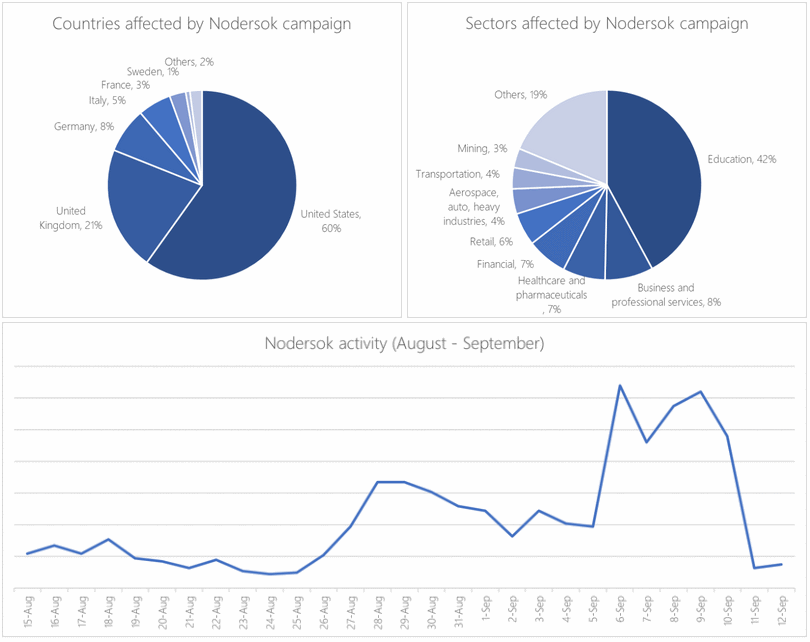 ليس من المؤكد من يقف وراء برمجية Nodersok الخبيثة لكن يبدو أنه من مجرمين عاديين بدلًا من الدول المعادية، وقد اعتقدت سيسكو أنه مصمم بشكل أساسي لتزوير النقرات أو لتوليد نقرات إعلانية تلقائية لزيادة الإيرادات من مواقع الويب، ومعظم الأهداف كانت المستهلكين العاديين في أوروبا والولايات المتحدة بدلًا من المستخدمين من الشركات والحكومات.