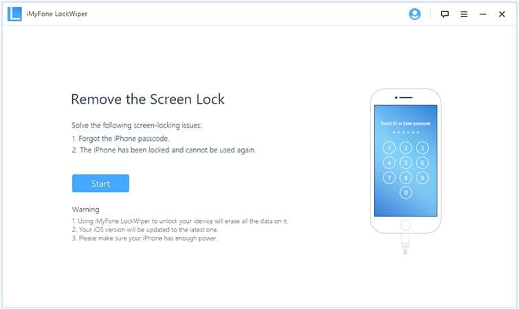 1- قم بتنزيل وتشغيل برنامج iMyFone LockWiper واضغط على زر “ابدأ”.