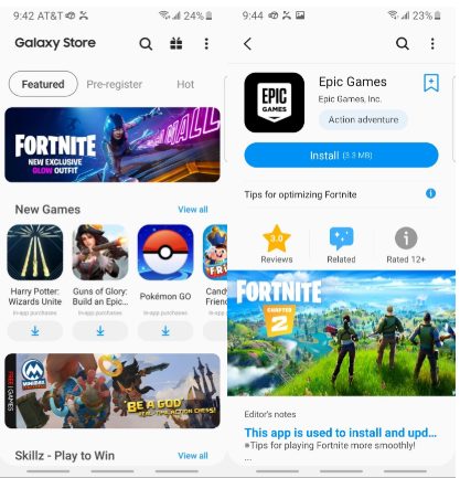 يُعد تطبيق Epic Games من أسهل التطبيقات التي يمكنك الوصول إليها وتحميلها على جهاز سامسونج الخاص بك، وهو متاح على أجهزة جالاكسي إس 7 وأحدث ويمكن تحميله من Galaxy Store.