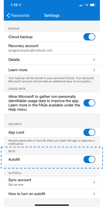 وتتم مزامنة كلمات المرور من متصفح مايكروسوفت إيدج، ويمكن مشاركتها عبر أجهزة متعددة باستخدام حساب مايكروسوفت، ويمكنك أيضاً مزامنة كلمات المرور هذه مع جوجل كروم باستخدام ملحق Microsoft Autofill الجديد، حيث سيؤدي هذا إلى مزامنة أي كلمات مرور مخزنة على حسابات مايكروسوفت الخاصة بك.
