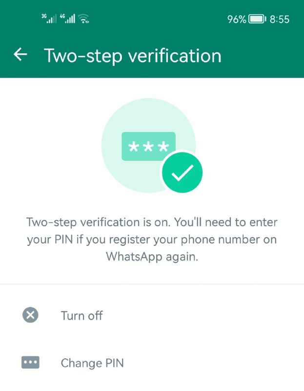 بمجرد الإنتهاء، سيتم طلب رقم التعريف الشخصي في كل مرة تقوم فيها بتسجيل رقم هاتفك في الواتس.