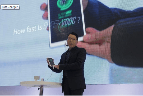 وقد كشفت شركة Oppo يوم الثلاثاء عن أحدث تطوراتها في عملية الشحن اللاسلكي التي تعد من أهم الاكتشافات التي رأيناها حتى الآن في معرض التجارة Mobile World Congress، وتحمل هذه التقنية اسم SuperVOOC وقد صرحت الشركة أنها قادرة على شحن بطارية بسعة 2500 ميلي امبير بشكل كامل خلال ربع ساعة، وهي تستخدم منفذ MicroUSB و USB Type-C.
