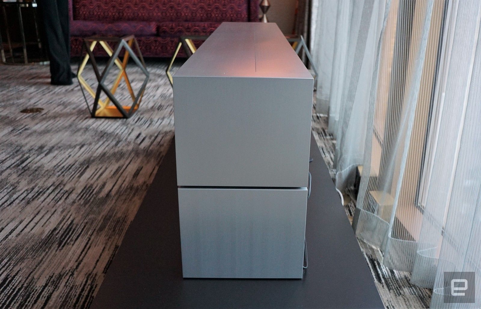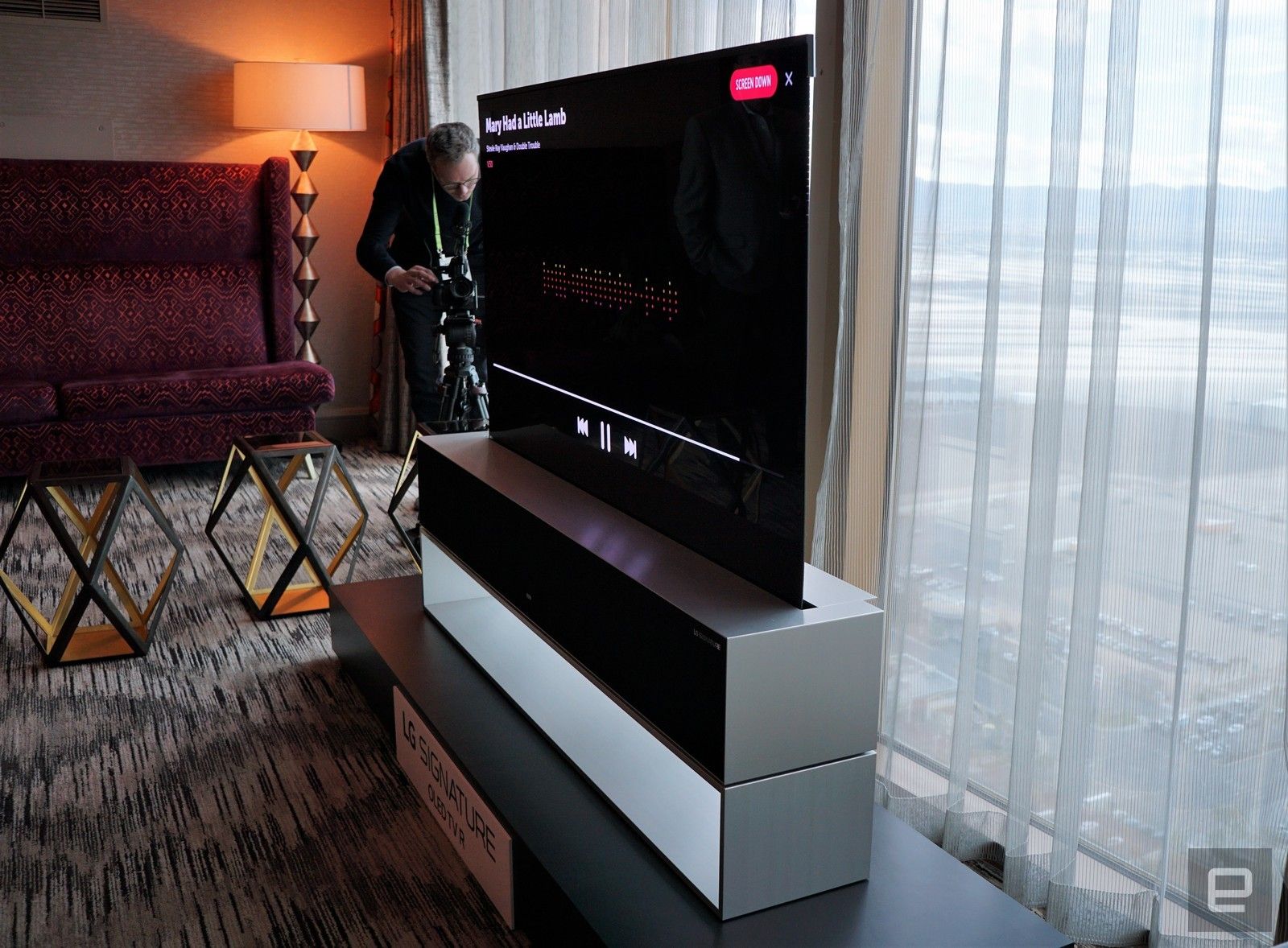 يأتي التلفزيون الجديد مع شاشة 4K بحجم 65 إنشاً واستخدام تقنية عرض OLED التي تمنح لوناً أسود حقيقياً ومستويات تباين هائلة لتجربة عرض أفضل، لكن الميزة الأساسية للتلفزيون ليست دقته العالية أو قياسه الكبير، بل أنها كونه يستخدم شاشة مرنة تسمح بلف التلفزيون بأكمله ضمن هيكل من الألمنيوم بحيث لا يظهر التلفزيون أبدأ عندما لا يكون هناك حاجة لاستخدامه. ومع أن هذه الميزة قد لا تكون مهمة للجميع، فهي مفيدة للغاية لمن لا يريدون التضحية بنافذة أو جزء من جدار ليكون مكاناً للتلفاز بينما لا يستخدمونه طوال الوقت.