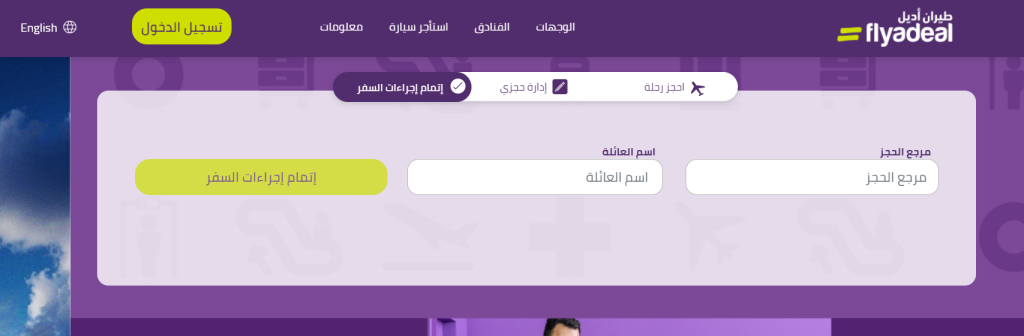 - في البداية يتم التوجه إلى موقع شركة طيران أديل.