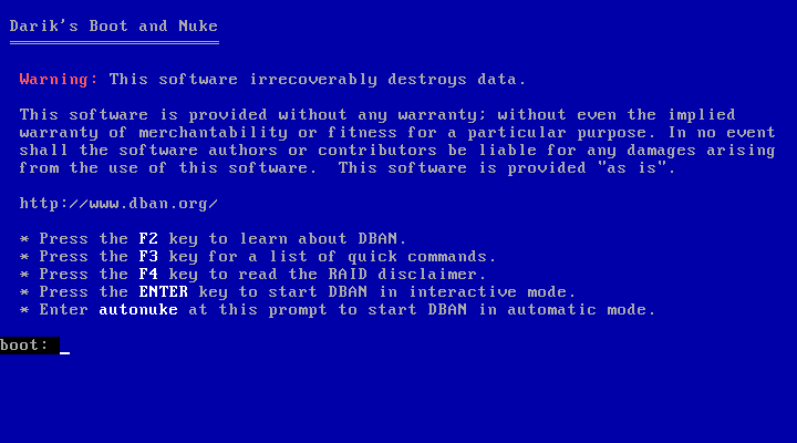 تعتبر أداة DBAN من أفضل أدوات مسح الأقراص الصلبة وبدات كبقية الأدوات مجانية مفتوحة المصدر إلى أن استحوذت عليها الشركة الأم بلانكو ومقرها فنلندا، ويدعم العديد من طرق في مسح البيانات، كما انه يمكنه تنظيف محرك الأقراص الثابتة على وسائط خارجية ويدعم الكثير من المعاير، والسيء بهذه الأداة أنه لم يعد هناك تطوير لها وليس لها دعم فني، فهي قديمة قليلًا لكنها تقوم بالمهمة بنجاح.