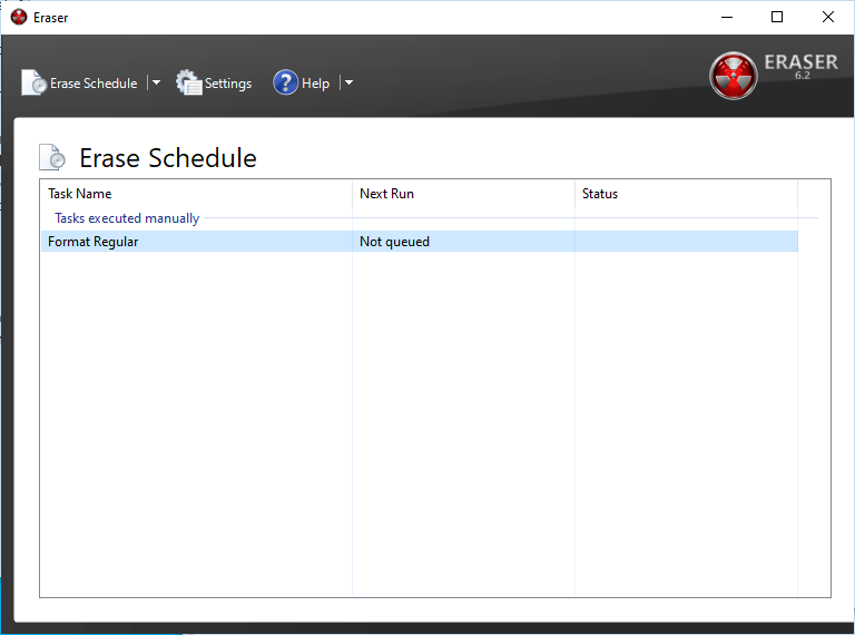 يعتبر برنامج Eraser من الأدوات القوية والمجانية في مسح البيانات كاملة، ويمكنه إزالة البيانات الحساسة تمامًا من محرك الأقراص الثابتة الذي يعمل على نظام التشغيل ويندوز 10 والأداة محملة بالعديد من تقنيات تطهير البيانات. يمكنك استخدامه كبديلًا للأداة السابقة في حالة إذا كنت تريد استخدام أداة محو البيانات على وسائط قابلة للتمهيد.