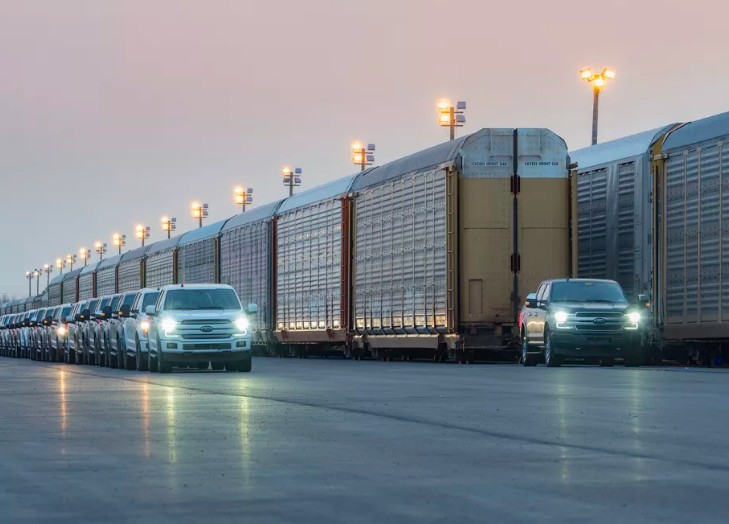 شاحنة فورد بيك أب F-150 تسحب 10 عربات سكة حديد بوزن 453 طن