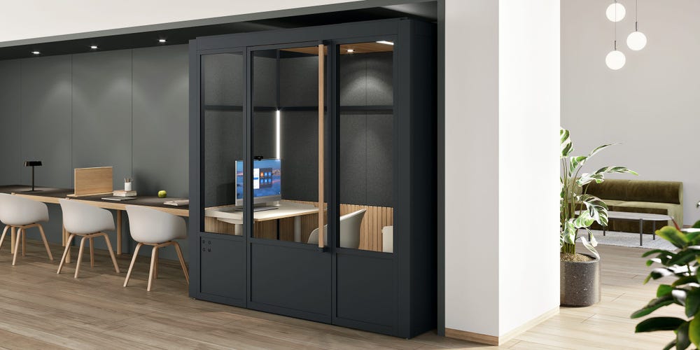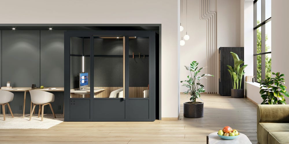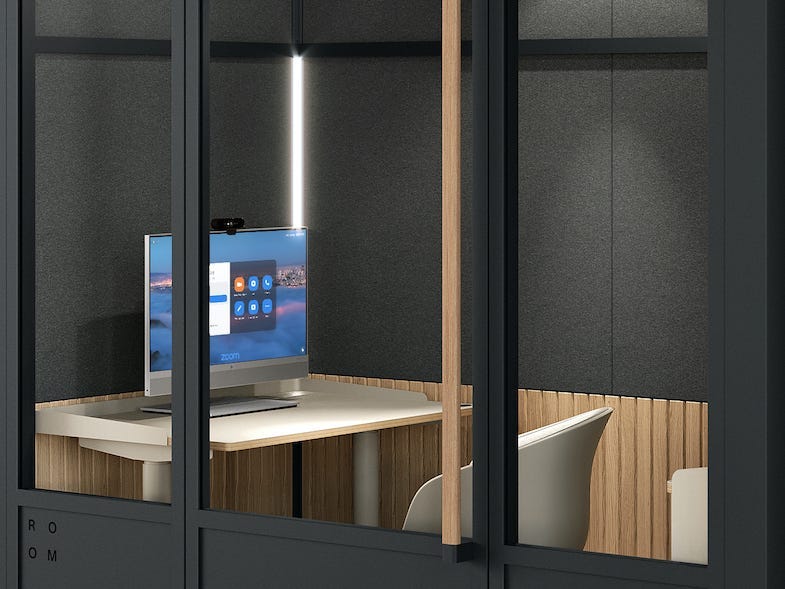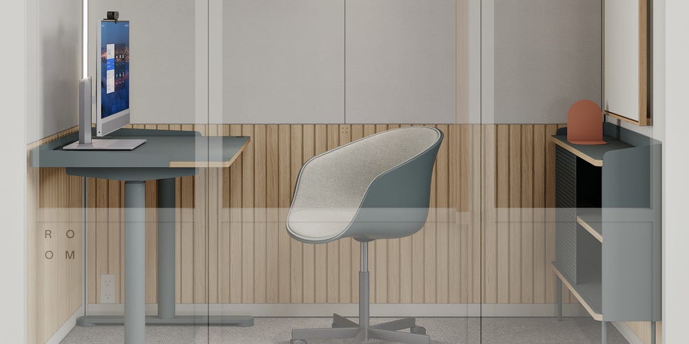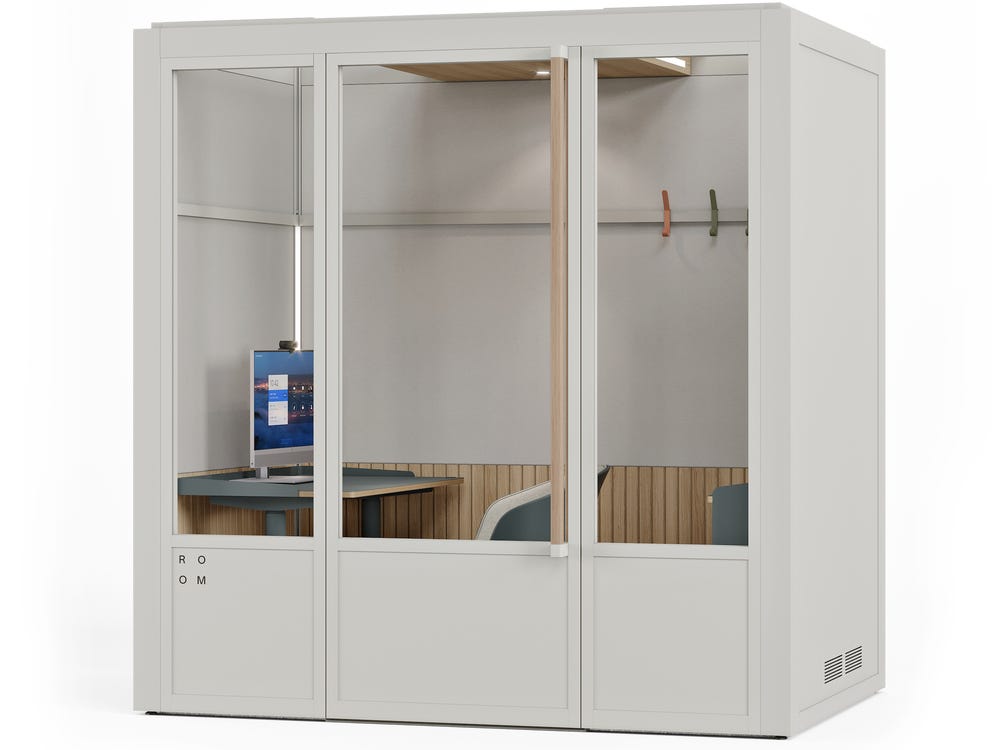 الغرفة قابلة للتركيب خلال ساعات فقط لتصبح جاهزة للاستخدام بشكل فوري، وتتضمن عدة ميزات أساسية. حيث أن الغرفة صغيرة نسبياً ومصممة لشخص واحد بالدرجة الأولى، مع شاشة كبيرة لعرض المشاركين الآخرين في الاجتماع. والمثير للاهتمام هو أن الغرفة مصممة لتكون عازلة للصوت قدر الإمكان. حيث تم إيلاء الخصوصية أهمية كبرى مع ستائر اختيارية لحجب الرؤية إلى الخارج أيضاً.