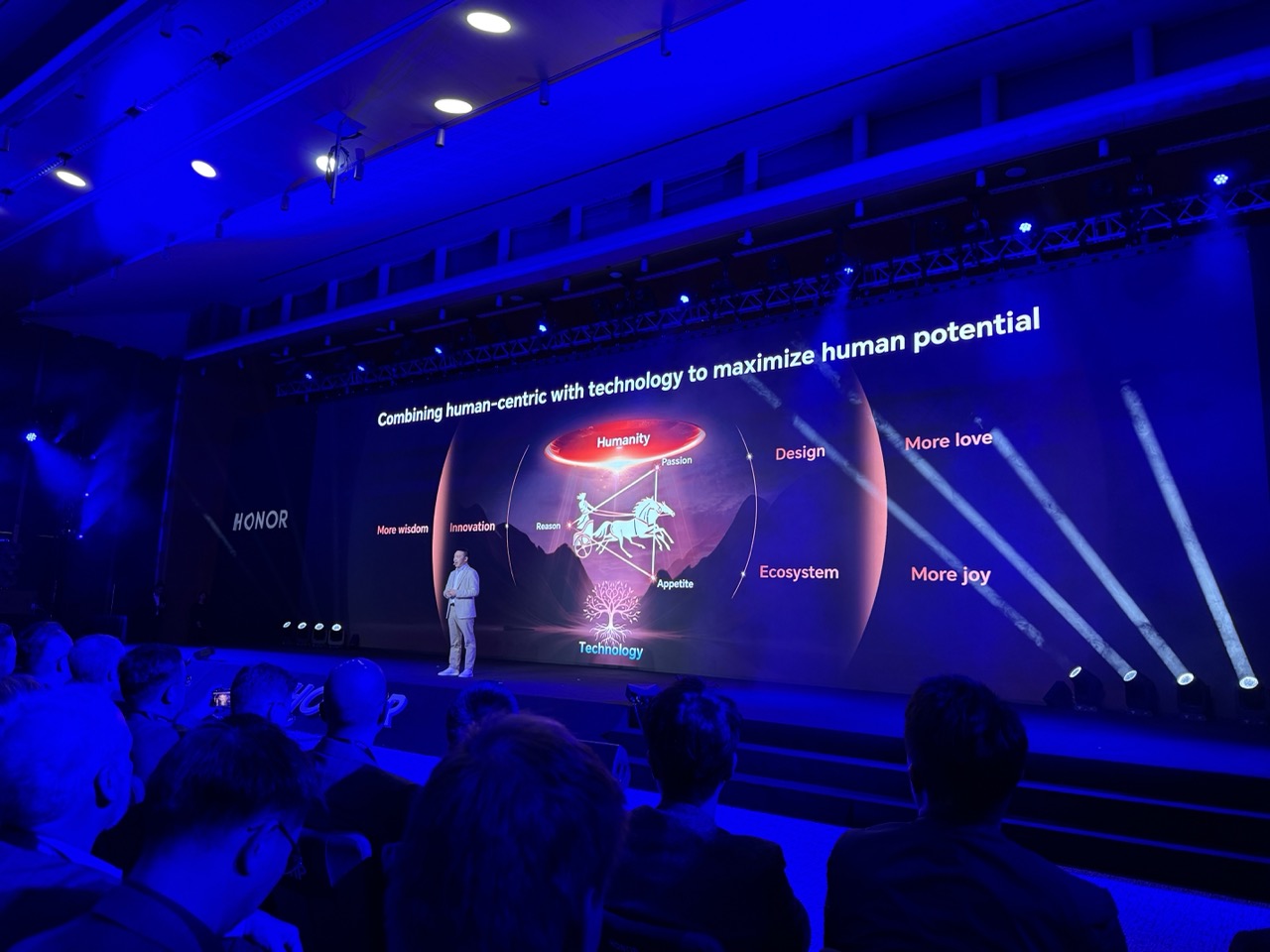قال لي: «في نهاية المطاف، سنعمل على تجاوز حدود الإمكانيات البشرية، ونتعاون في تشكيل نموذج جديد للحضارة في عصر الذكاء الاصطناعي العام (AGI). سيشهد العالم حقبة يتعايش فيها البشر، ككائنات قائمة على الكربون، مع ذكاء اصطناعي قائم على السيليكون. ولهذا، من الضروري أن نتكاتف جميعاً لتعزيز الإمكانيات البشرية واحتضان المستقبل الذكي». كما دعا الجميع للانضمام إلى HONOR لتحقيق المرحلة الثالثة والأخيرة من خطتها.