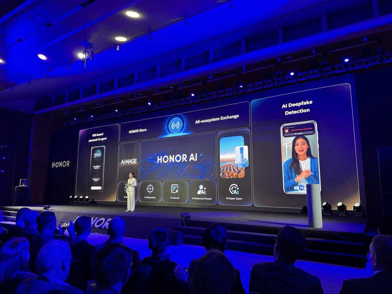 قدمت HONOR لأول مرة في العالم تقنية مشاركة الملفات عبر النظام البيئي الكامل. مع هذه التقنية، يمكن للمستخدمين الاستمتاع بسرعات فائقة، سواء عند نقل الملفات إلى جهاز واحد أو العديد من الأجهزة التي تعمل بنظامي iOS وAndroid. بالإضافة إلى ذلك، أعلنت العلامة التجارية أيضاً أن تقنية اكتشاف التزييف العميق بالذكاء الاصطناعي (AI Deepfake) ستصل قريباً إلى هواتفها الرائدة الجديدة وهواتفها القابلة للطي في الأسواق الدولية.