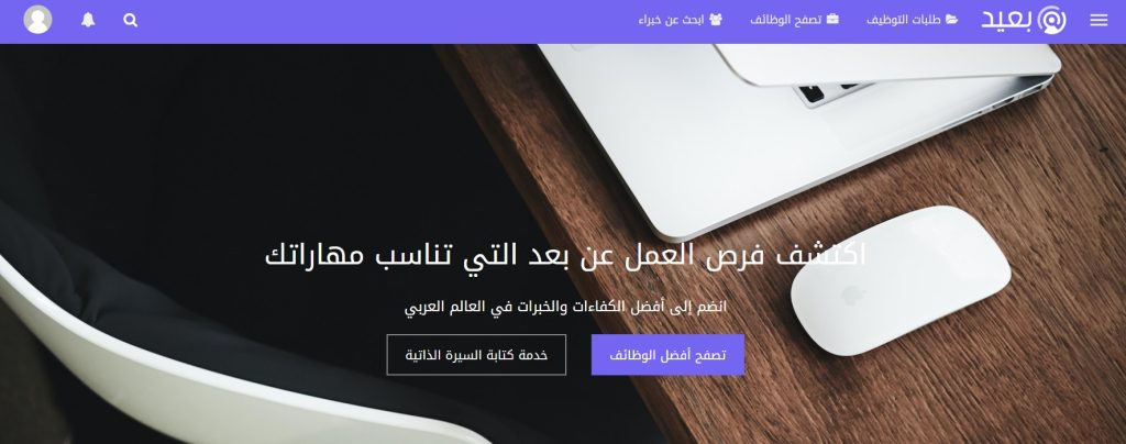 الموقع التالي ضمن قائمة أفضل 5 مواقع الربح من الانترنت باللغة العربية في 2024 هو بعيد وهو أحد المشاريع التابعة لشركة حسوب ويمكن أن نصفه بأنه حلقة الوصل بين الشركات و الفريلانسرز حيث يعمل على مساعدة أصحاب الأعمال على إيجاد وتوظيف واستقطاب أصحاب المهارات والخبرات في البلدان العربية، وإذا كان لديك مهارة التصميم أو إدارة الأعمال أو تجيد اللغة الإنجليزية أو حتى يمكنك الكتابة والتسويق عن بعد، اعتمد على موقع بعيد وسوف وتصفح العديد من الوظائف المختلفة و إبدأ في ربح الدولارات.