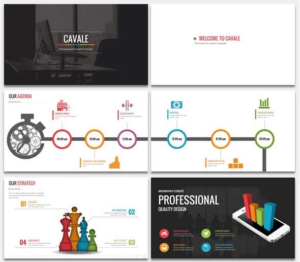 توفر لك هذه القوالب كذلك بعض المميزات والخدمات والرسوم البيانية والرسوم المعلوماتية لتقديم عرضك الخاص بطريقة احترافية، مع وجود جداول لتسهيل عملية عرض المعلومات، كما أن هناك العديد من الانتقالات والتأثيرات الاحترافية في هذه المجموعة.